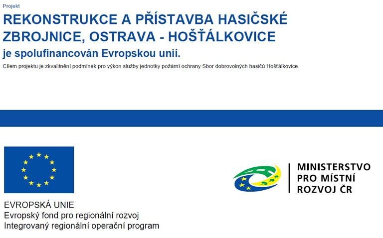 Předmětem projektu "Rekonstrukce a přístavba hasičské zbrojnice, Ostrava - Hošťálkovice”, registrační číslo CZ.06.1.23/0.0/0.0/16_055/0003135, je komplexní rekonstrukce hasičské zbrojnice, Ostrava - Hošťálkovice. Cílem projektu je zkvalitnění podmínek pro výkon služby jednotky požární ochrany Sbor dobrovolných hasičů Hošťálkovice.