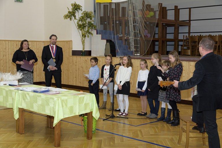 Následně všem přítomným, pod taktovkou p. učitele Višnického, zahrály a zazpívaly děti naší základní školy.